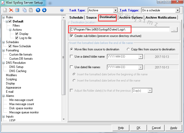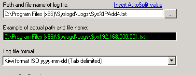 kiwi syslog软件收集的SNMP数据默认的保存方式是:以日期时间为序,在一个文件中保存所有设备的日志,每小时生成一个文件。这样的保存方式是很不利于查询各设备的log信息的,所以在比较新的版本中增加了以设备IP地址分开保存的方式,但软件上的设置选项并未明确提示,所以一般很容易忽略掉。应在log to files的选项卡中的保存路径和文件名选项中手工键入:sys%IPAdd4.txt 如下图