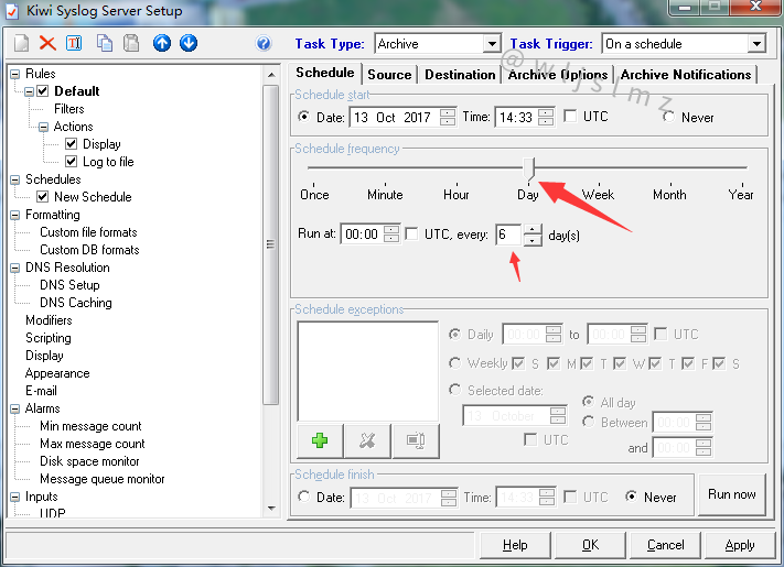这里的ip地址改成刚配置好Kiwi_syslog的服务器地址