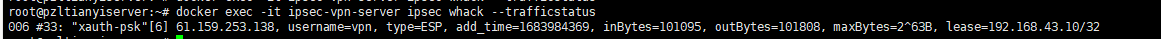 docker exec -it ipsec-vpn-server ipsec whack --trafficstatus