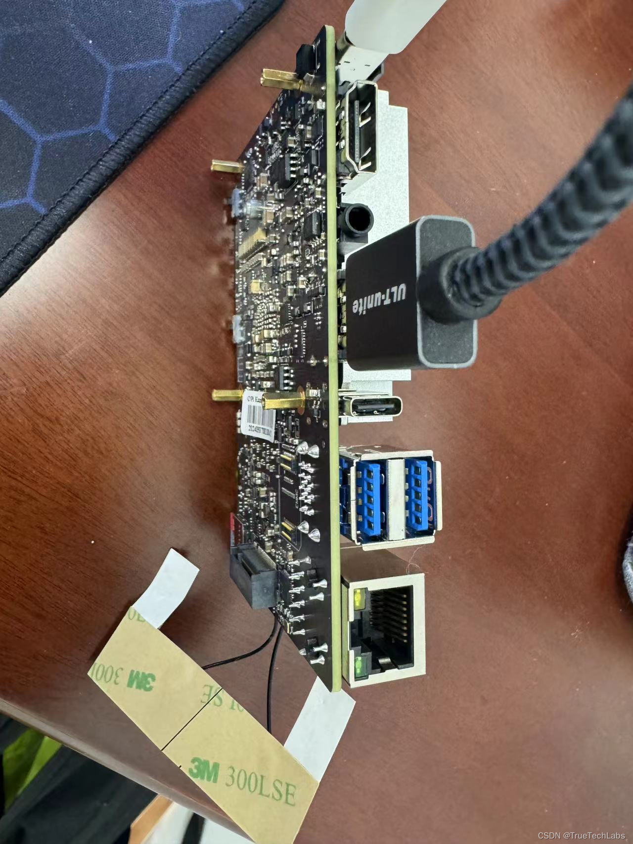 分别是电源输入(65W)、USB3.02、Type-C3.0、HDMI2.02、千兆以太网接口、3.5mm耳机孔音频输入/输出等,作为备用的电脑,方便我们接入外设比如键盘鼠标、显示器、耳机等。