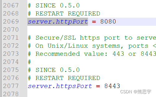 这里是设置 http 的端口号,下面是 https ,如果只用在局域网中,可以不用管