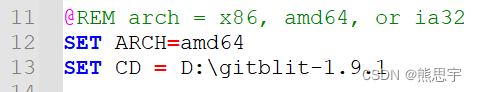 SET CD=D:\gitblit-1.9.1 (根据自己的文件路径填写)