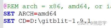 在里面加一句:SET CD=D:\gitblit-1.9.1
