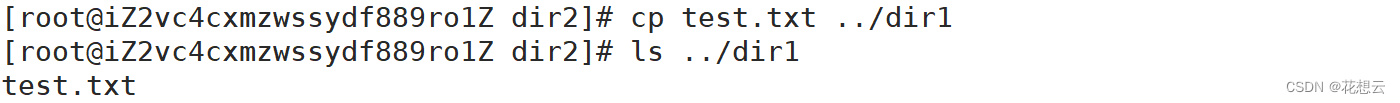 ▶ cp test.txt ../dir1 拷贝dir2下的 test.txt 文件到dir1目录(..为上级目录);