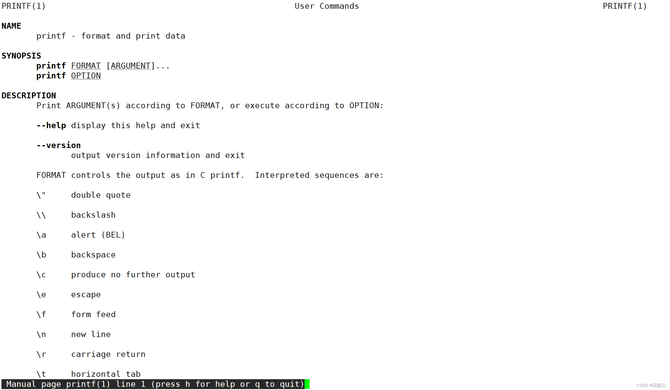 ▶ man 1 printf 在手册第一章中查询printf指令;