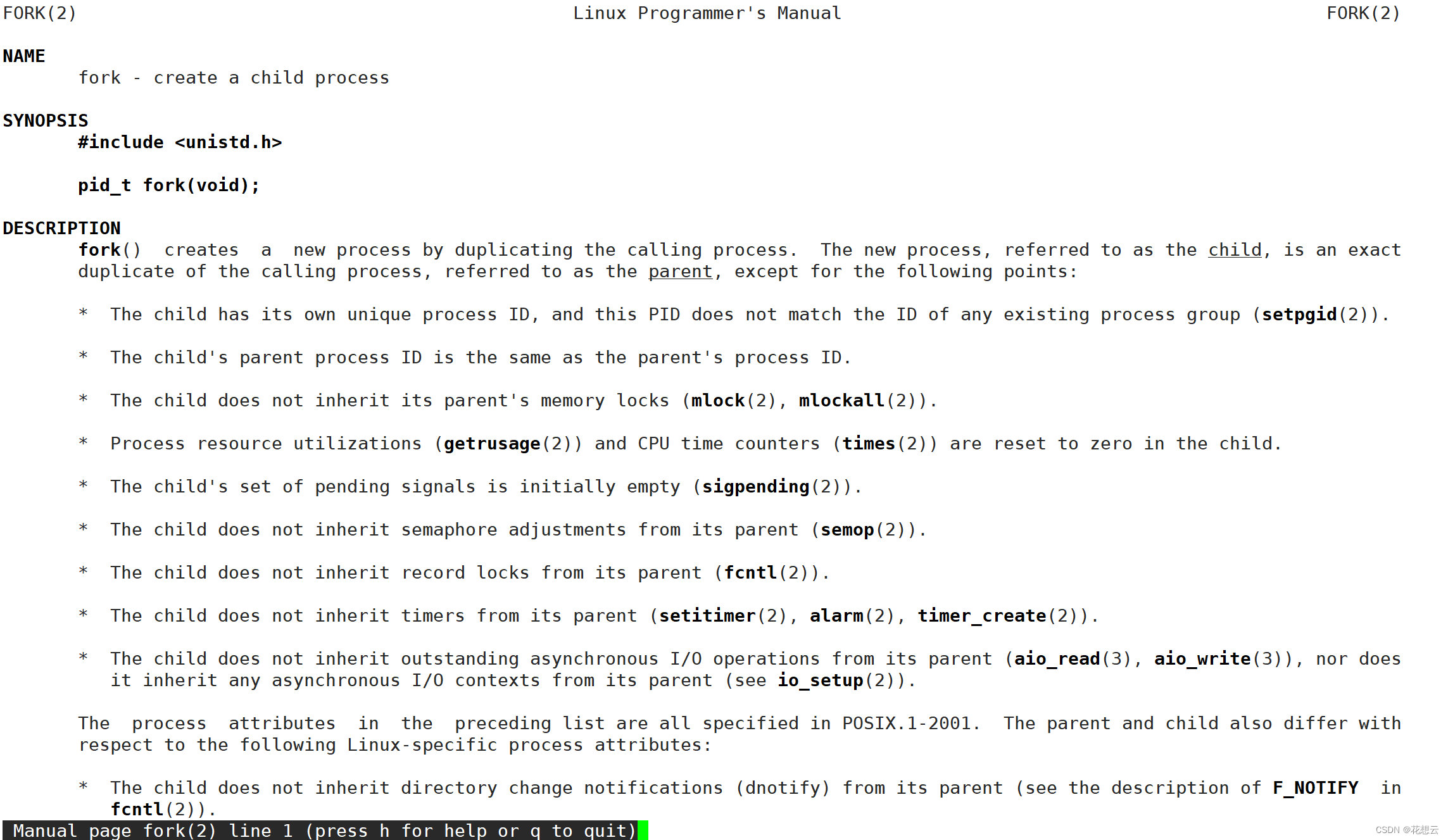 ▶ man fork 在手册所有章节中查询fork指令,找到就停下;