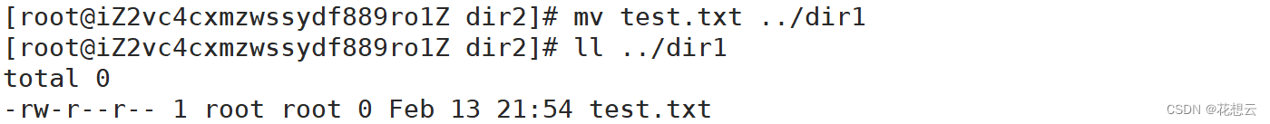 ▶ mv test.txt ../dir1 将dir2中的 test.txt 文件剪切到dir1目录下;