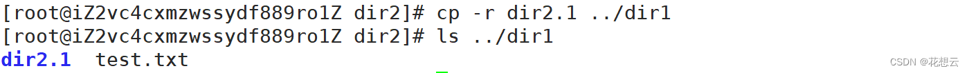 ▶ cp -r dir2.1 ../dir1 拷贝dir2下的 dir2.1 目录到dir1目录;