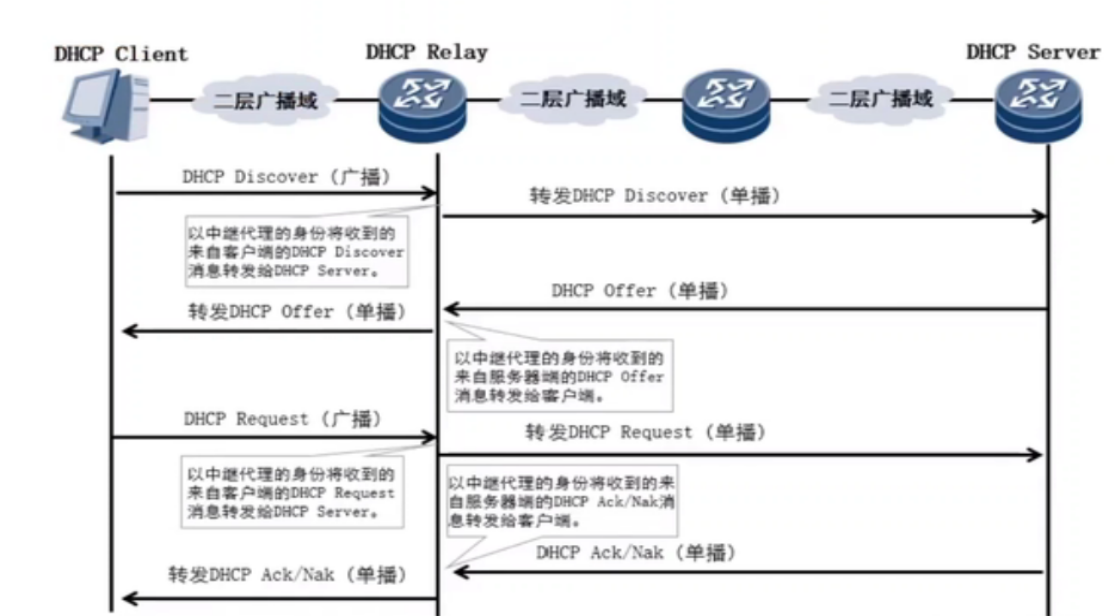 (2).当企业的内部网络规模较大时,通常被划分为多个不同的子网,网络内配置了VLAN,VLAN能隔离广播,而DHCP协议使用广播,DHCP服务器在哪个VLAN中,就只有在相同VLAN内的客户机能从DHCP服务器那里获取IP地址。所以,将DHCP这种特殊的广播信息在不同网段的VLAN之间转发,让其他VLAN的客户机也能从DHCP服务器那里获得IP地址,就要用到DHCP中继