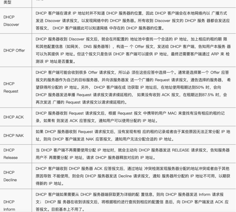 DHCP给主机指定一个有时间限制的IP地址,到达使用期限后或主机明确表示放弃这个地址时,客户端需要重新申请地址; 如果客户端没有重新申请,则这个地址将可能被其它的主机使用; 绝大多数客户端得到的都是这种 动态分配的地址(可以解决IP地址不够用的困扰)