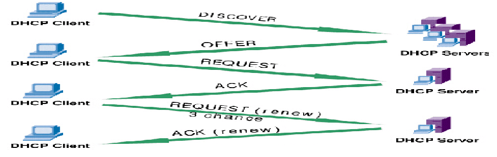 普通电脑中都内置有DHCP客户端模块,电脑接上网络后,DHCP客户端发现新连通的网络,会在该网络上找DHCP服务器。DHCP服务器将给电脑提供合理的网络配置,并把设置信息传回本机,本机和DHCP服务器之间的通信,都是通过DHCP协议进行的