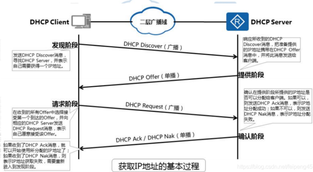 请求获得IP,子网掩码,默认网关,DNS等信息