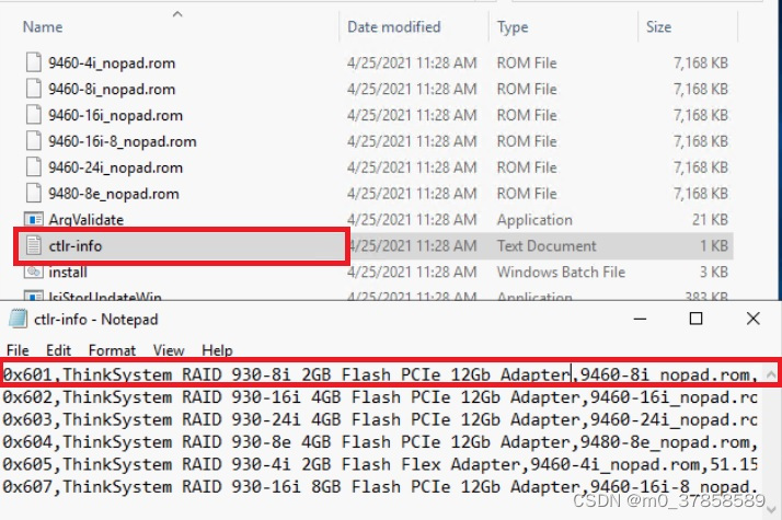 在此示例中,安装了 RAID 930-8i,需要 9460-8i_nopad.rom 将其复制到USB磁盘驱动器。