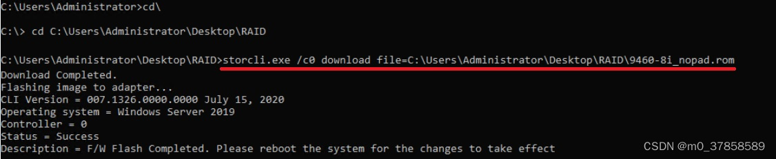 storcli /c x download file=文件路径,其中x = 控制器编号 – 如果仅安装一个 RAID 适配器,则通常为0。