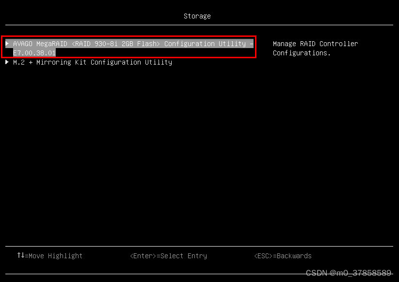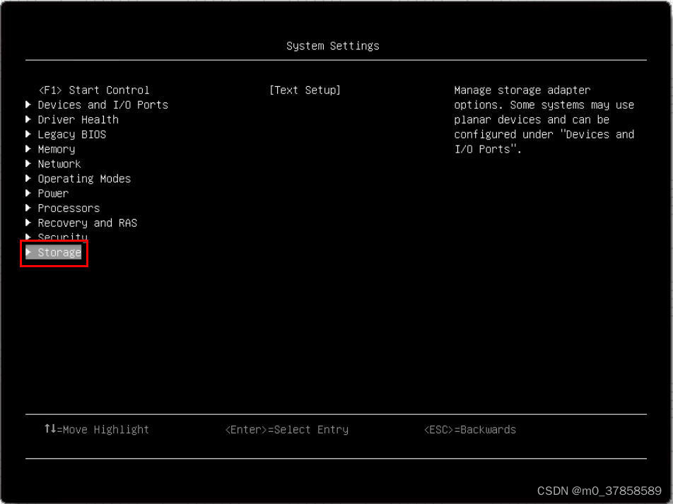 15. 当看到启动屏幕时按 F1。要检查固件升级是否成功,请选择系统设置>存储> RAID 适配器 >主菜单>控制器管理>固件版本。