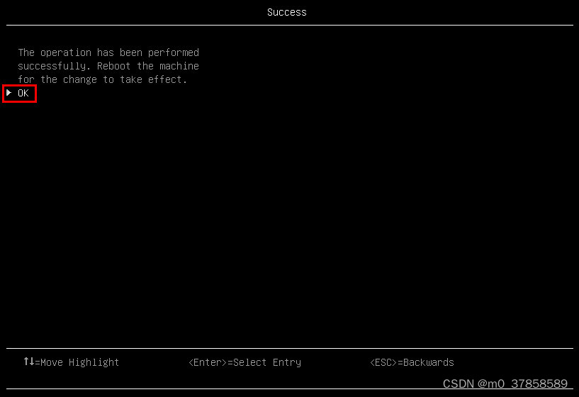 13. 固件更新过程将开始,大约需要不到 30 秒的时间。升级完成后,将显示“成功”屏幕,并显示“重新启动计算机以使更改生效”消息。