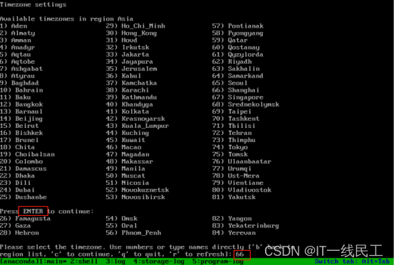 直接回车,显示所有地区信息,然后输入66上海,然后回车。