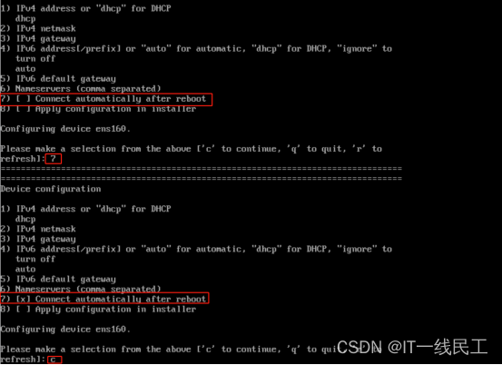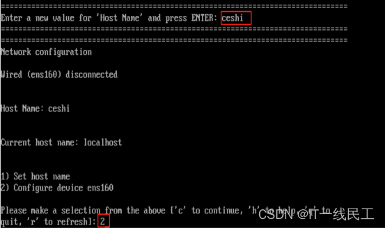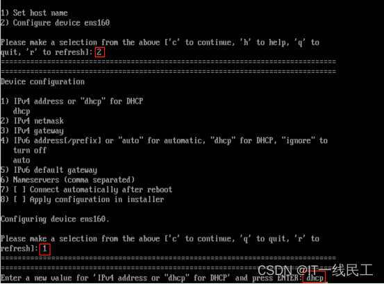 然后选择2设置网络,选择1配置ipv4地址,输入dhcp