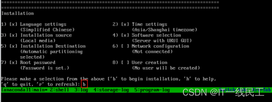 b是开始安装,h是帮助手册,q是退出,r是刷新