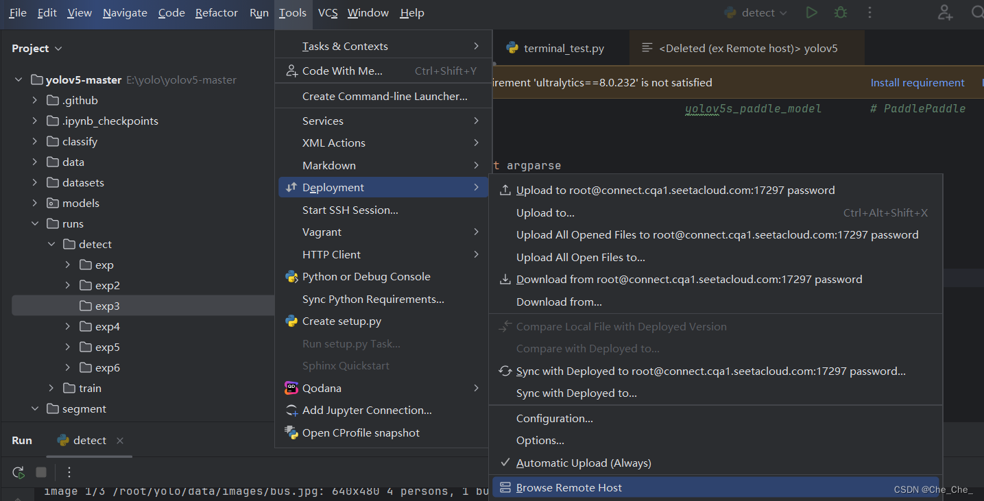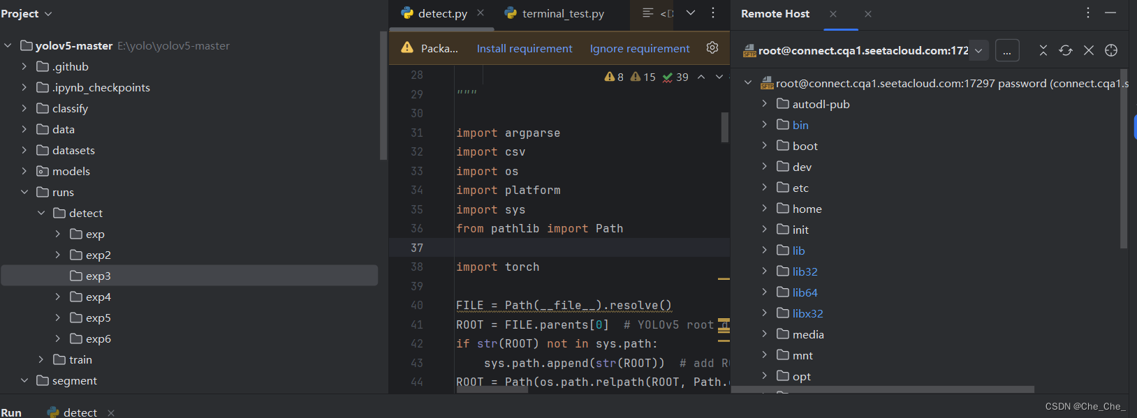 如果遇到问题可以参考这个博客:PyCharm远程链接AutoDL_pycharm远程连接autodl-CSDN博客