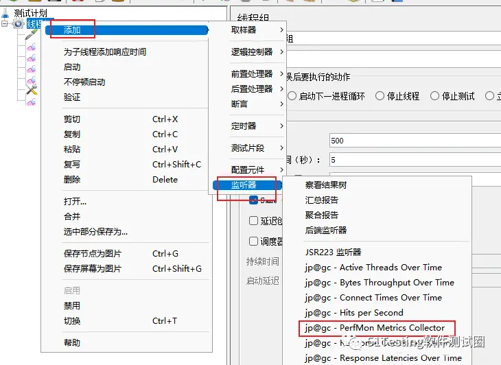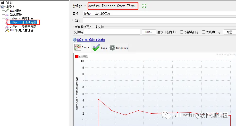 如果可以配置如下三个监听器,就表示插件已经安装成功!执行压力测试,就可以看见压测的每秒事务数、响应时间,活动线程数等压测结果。