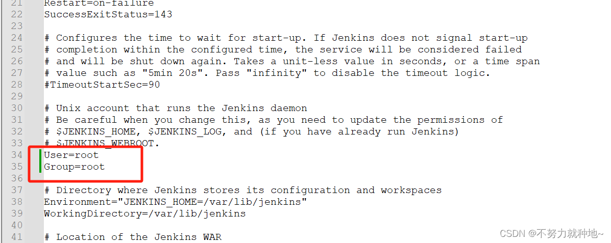 # 修改 group , port vi /usr/lib/systemd/system/jenkins.service 如下: