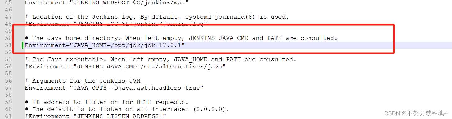 # 上传到此 cd /home/jenkins #rpm -ih 文件名.比如: rpm -ih jenkins-2.426.2-1.1.noarch.rpm 5. 修改端口号,java环境,权限 (重点,配置文件地址):