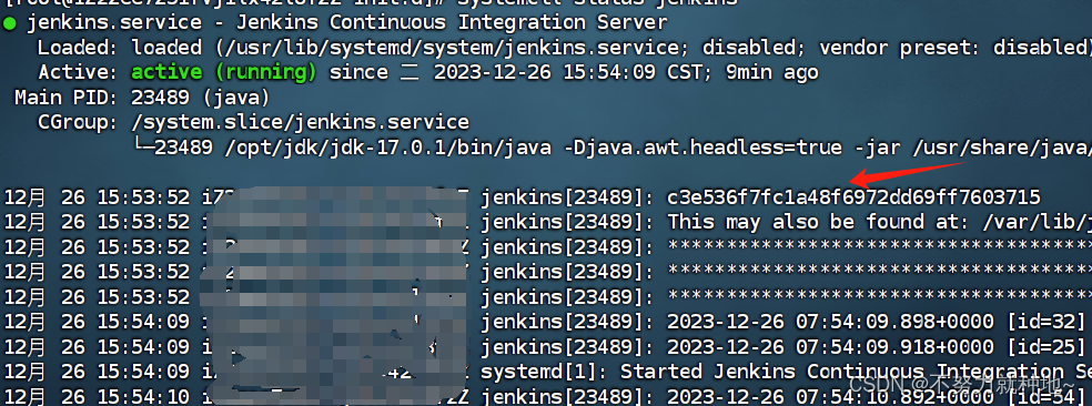 #查看状态, 和密码 systemctl status jenkins #如我的: #c3e536f7fc1a48f6972dd69ff7603715