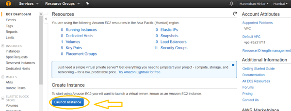 2、 现在在创建实例Create instance下点击“启动实例”Launch Instance按钮。