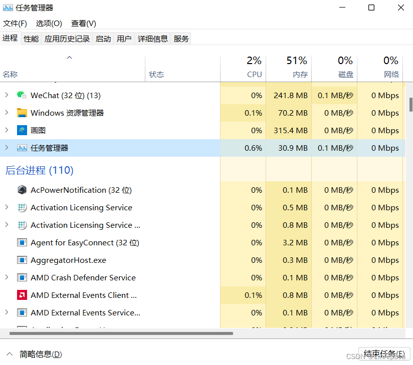 我们打开任务管理器便会发现这些正在运行的可执行文件都是一个个进程。
