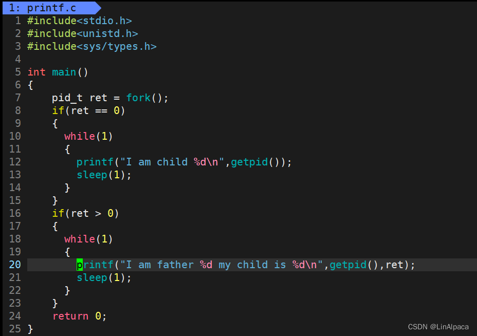🥖为了让父子进程执行不同的代码块,我们可以用 if else 将父子进程分开从而进行不同的工作。
