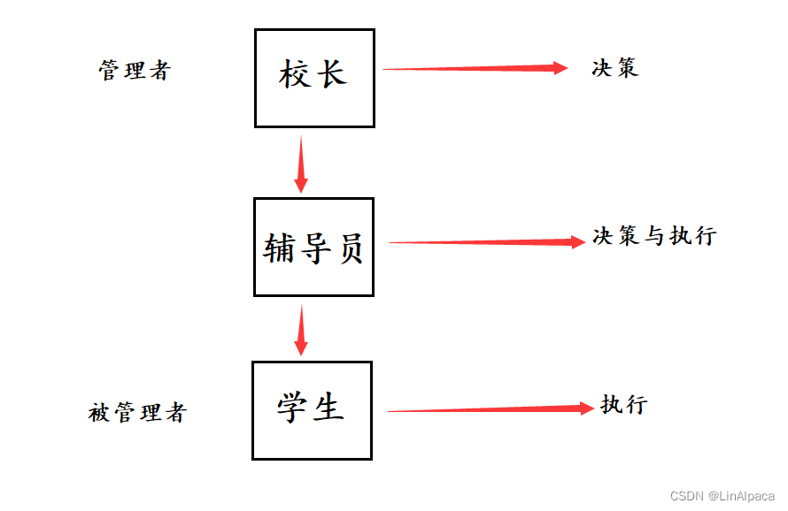 🥖在学校里,校长是管理者,而我们学生是被管理者,校长只负责决策并不需要尽到执行的义务,假如校长安排你转一个专业或者换一个宿舍,他并不需要见到你,而是对你的数据进行修改便可,之后的辅导员便会协助你调整。即管理者和被管理者是不需要直接沟通的。