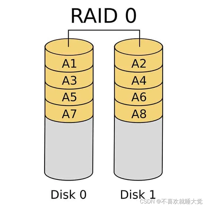至少需要两块盘,具有较强的读写性能,具有很高的数据传输率。