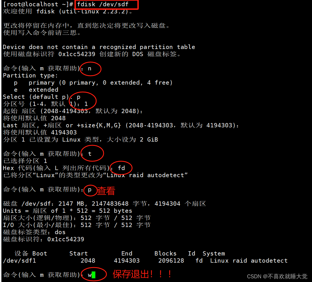2、使用fdisk分区,类型为fd
