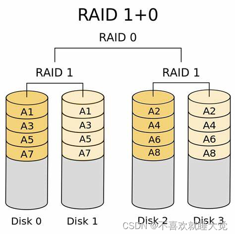 RAID 10 将每个磁盘的数据镜像到另一个硬盘上,提供了数据的冗余备份。每个数据块都有一个副本存储在不同的硬盘上,确保数据的可靠性和安全性。RAID 10提供了冗余和容错能力。即使多个硬盘同时发生故障,只要每对镜像中的一个硬盘仍然完好,数据就不会丢失。这使得 RAID 10 在硬盘故障恢复方面有极大的可靠性。