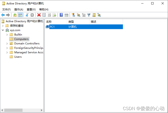 (7)重启后,打开【Active Directory用户和计算机】窗口,选择控制台树中的Computers节点,就可以看到新加入域的客户机了,如图所示。