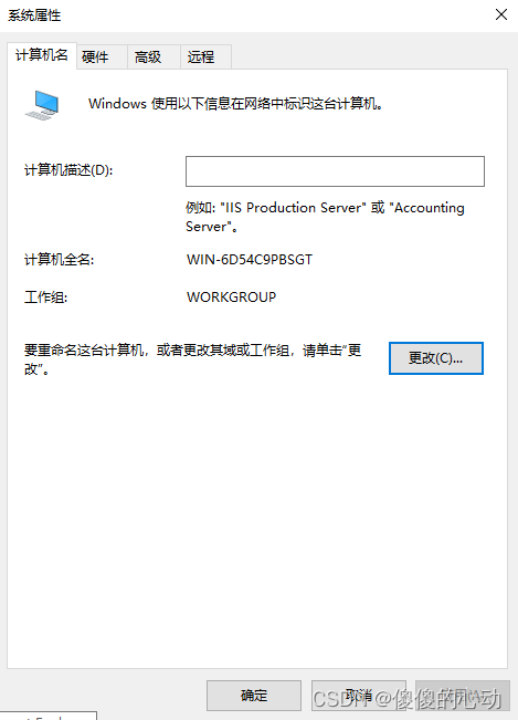 (2)通过【控制面板】或桌面上的【计算机】图标,打开【系统】窗口,在窗口中单击【更改设置】,打开【系统属性】对话框,在【计算机名】选项卡中,单击【更改】按钮,如图所示。