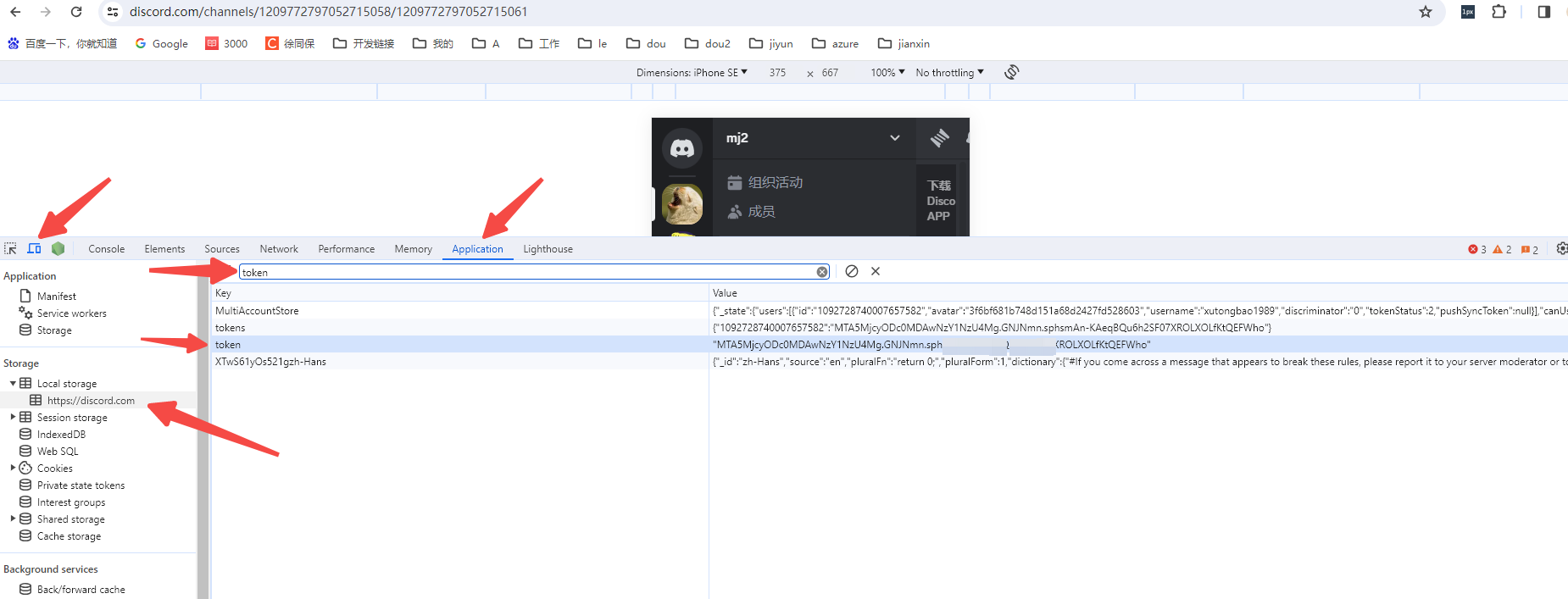 F12->手机模式-》application-》local storage-》填写过滤条件【token】