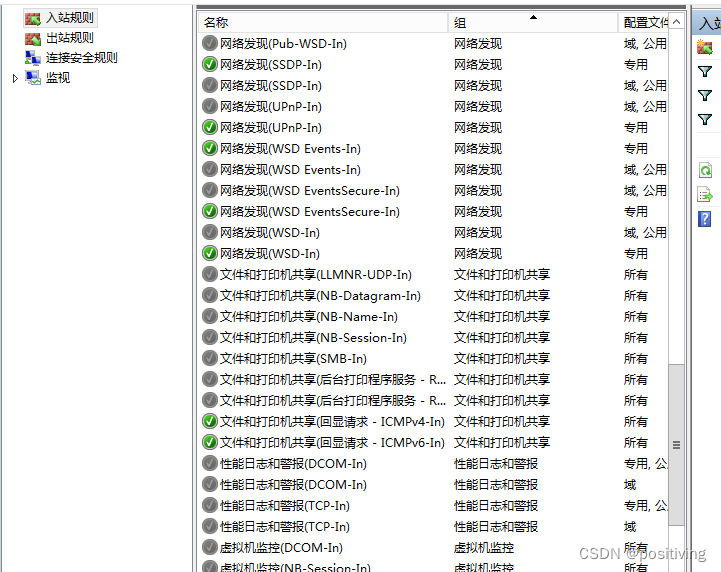 4.文件和打印机共享(回显请求-) 两个一个为ipv4,一个为ipv6,按需开启。右边启用规则即可