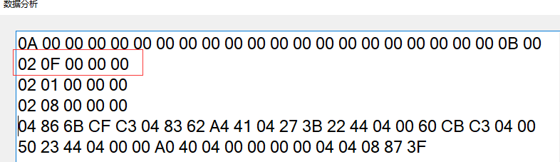 然后经过多个数据包的分析,下图红框的02 0F位置的东西应该是操作类型,就是用来表示这是一个什么操作