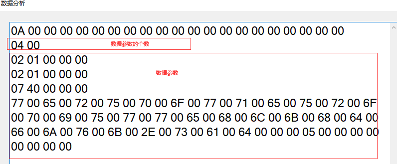 长度后面的数据,为了后续方便使用,现在把它们称作为数据参数,长度称为数据参数的个数,如下图