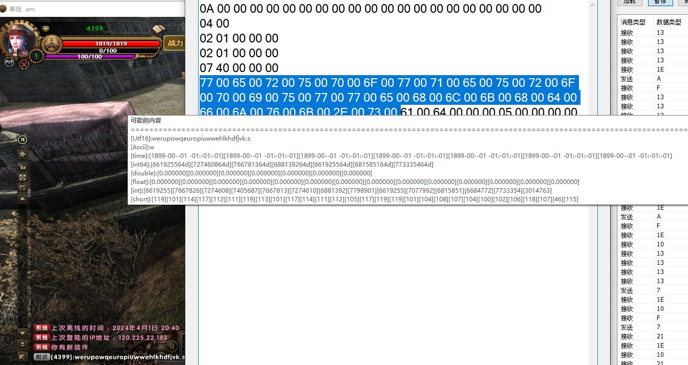 如下图进入游戏之后,基本上发送的数据包都是0A开头