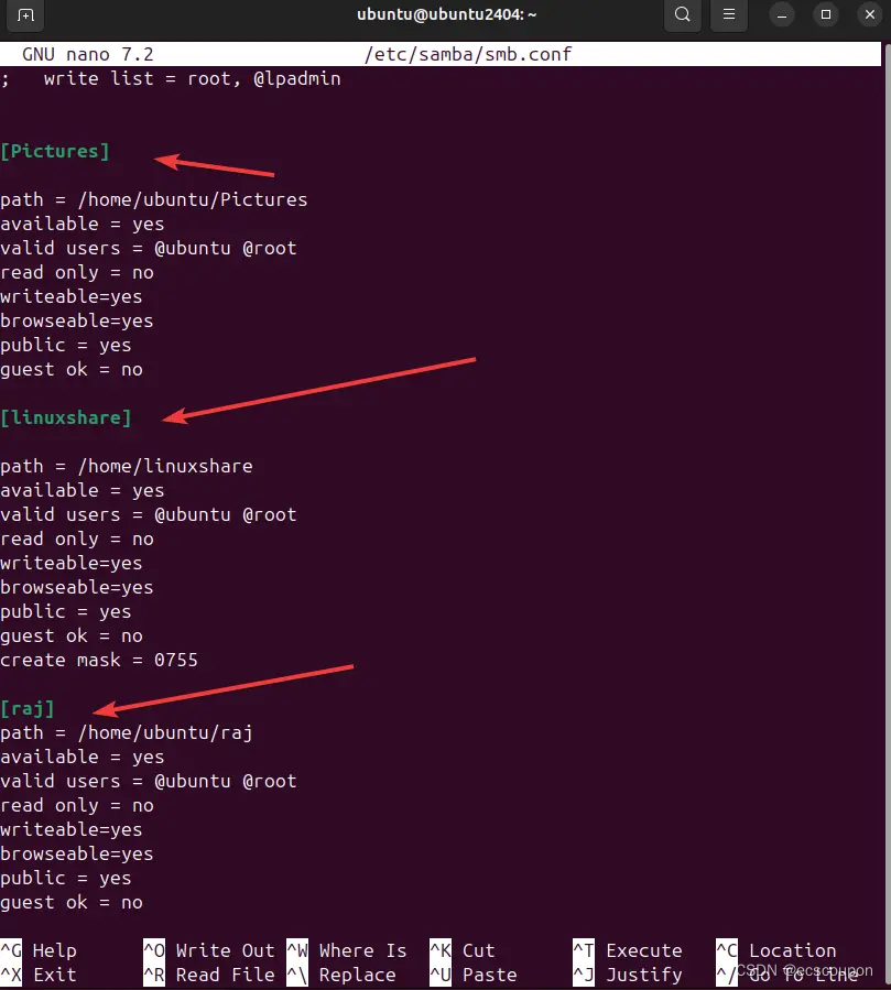 sudo nano /etc/samba/smb.conf