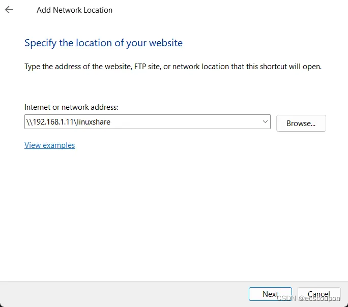⇒ 现在,按以下格式输入 IP 地址和共享文件夹名称: