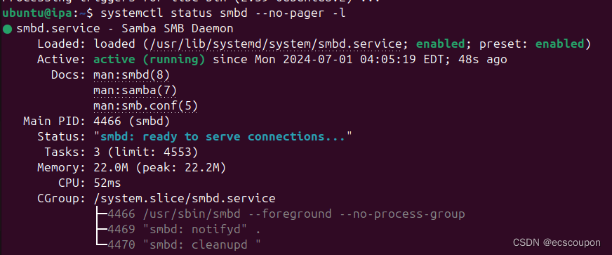 systemctl status smbd --no-pager -l