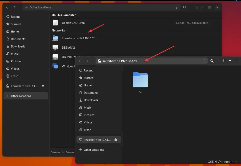 连接后,您将可以访问您的共享文件夹以及您正在使用的Debian或任何其他 Linux 上的共享文件夹的快捷方式。