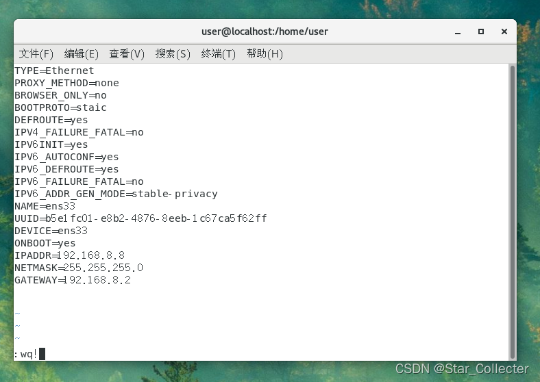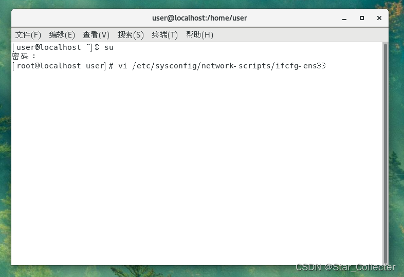 vi /etc/sysconfig/network-scripts/ifcfg-ens33 若输入后为空则参考该文章[点击跳转]
