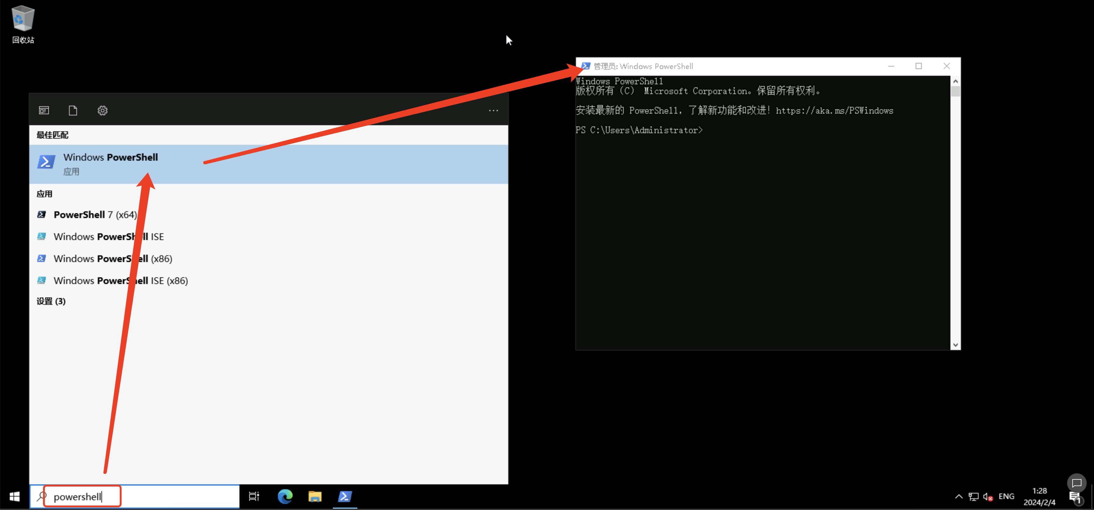 1、登录已完成部署的幻兽帕鲁 Windows 服务器,详细操作可以参考官方文档 使用 OrcaTerm终端 远程登录 Windows 实例。登录成功后,在 Windows 服务器的桌面内打开 PowerShell 。
