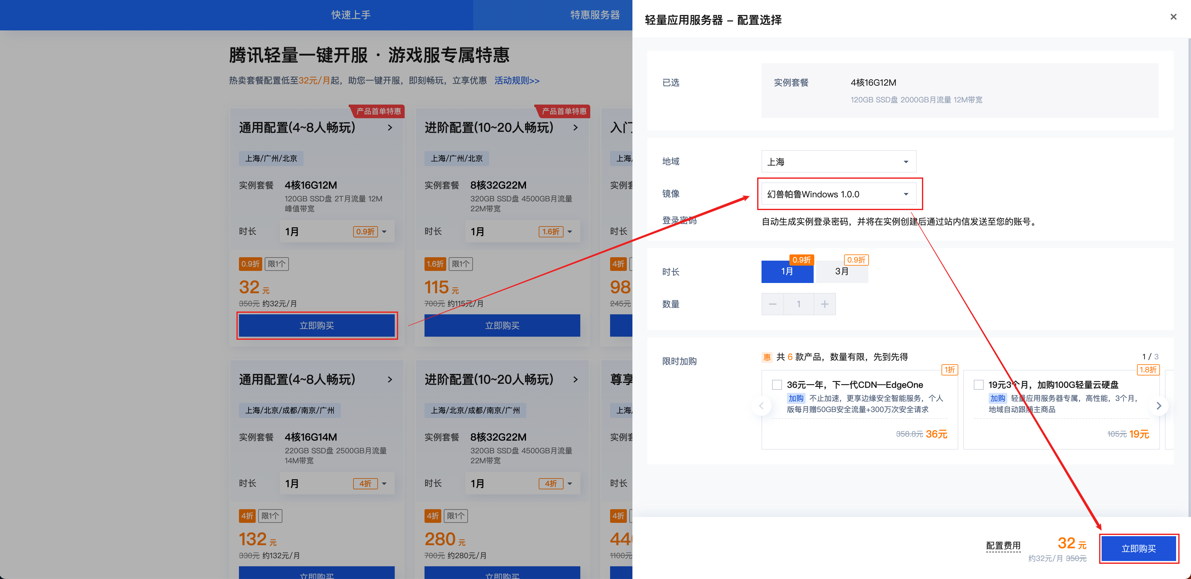 在购买页中确认购买所需的其余选项后,单击【立即购买】即可: