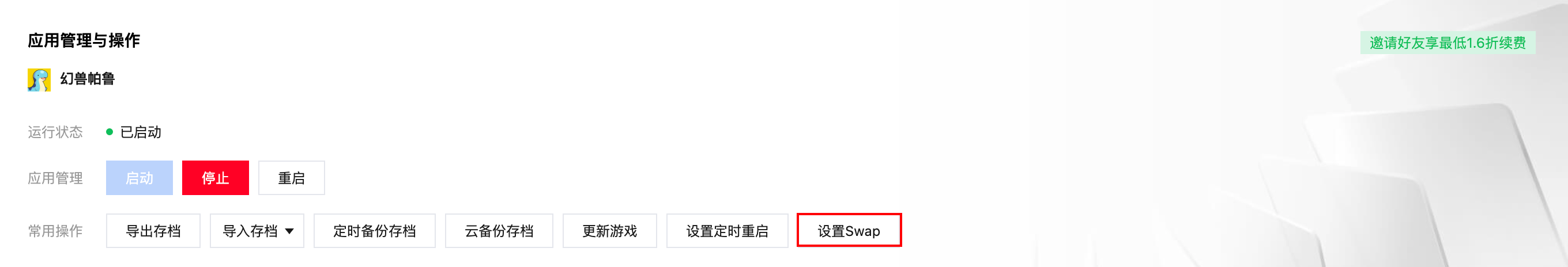 1、登录轻量云控制台,找到你想要设置Swap的幻兽帕鲁 Linux (Ubuntu) 服务器,并点击服务器卡片进入详情页,找到“应用管理”。